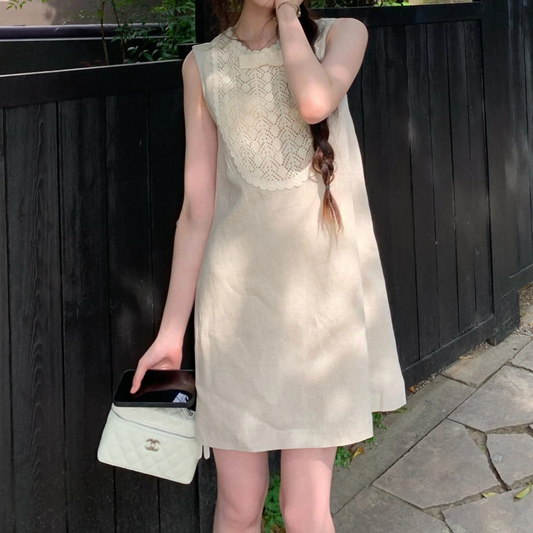 繊細なレースとリボンモチーフが映える、大人のためのフェミニンワンピース。