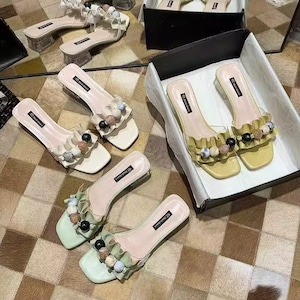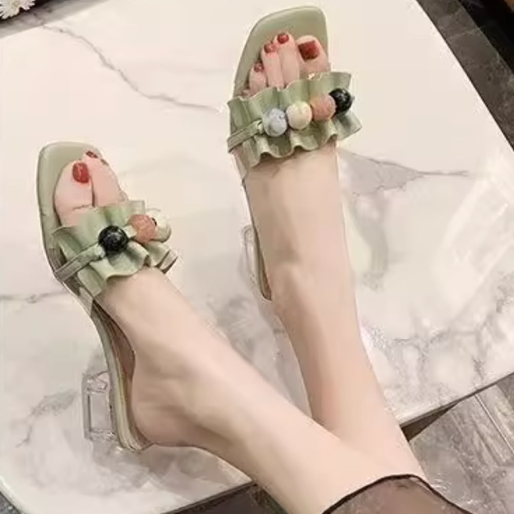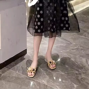 マーブルビーズクリアヒールサンダル H021