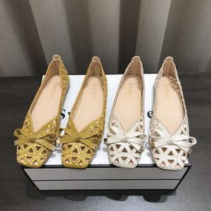 つま先のリボンがさりげないアクセントになり、可愛さと上品さをほどよく引き立てます。
