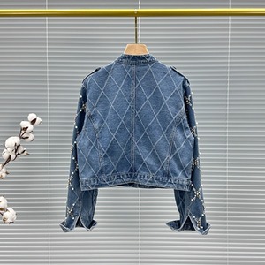 フロントにパールとビジューをたっぷり散りばめた、華やかで存在感のあるデニムジャケット。