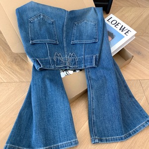 バックウエストにあしらわれたリボンモチーフが、さりげなく甘さを添えるデニムパンツ。