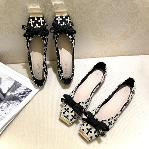 エレガントなクロスパターンが印象的なフラットパンプス。