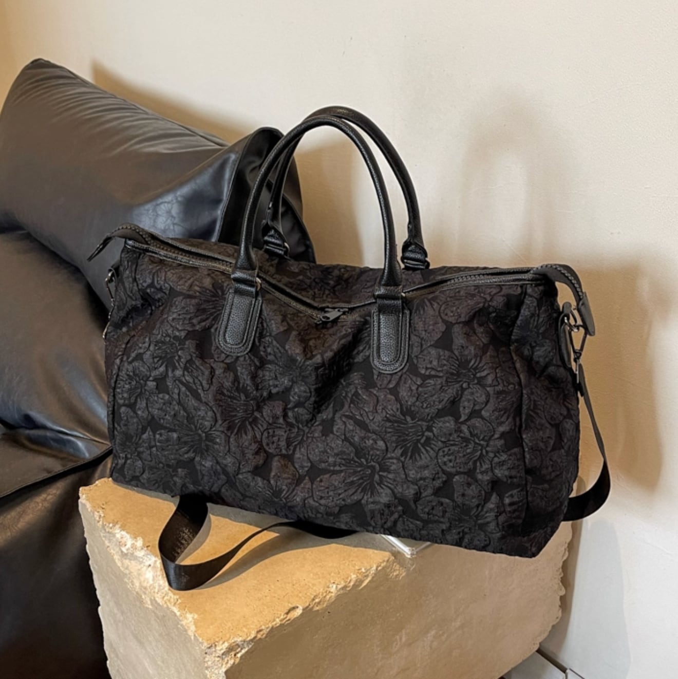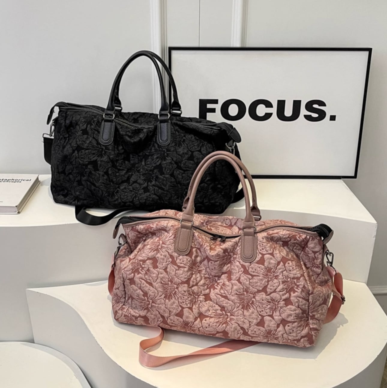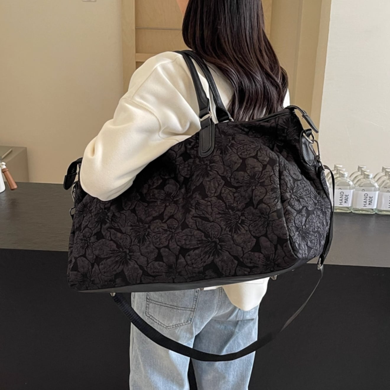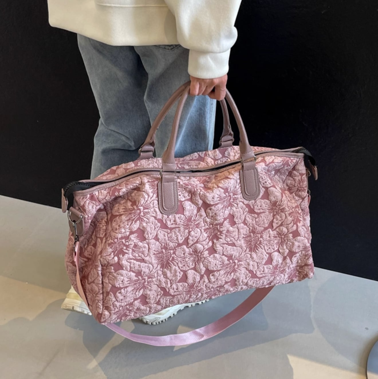 立体的なフラワーパターンが華やかに映える、大容量の2WAYバッグ。