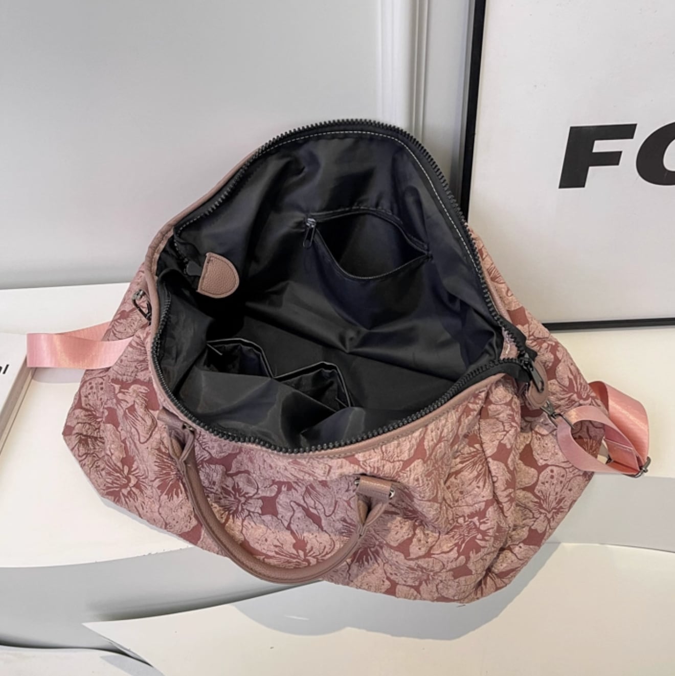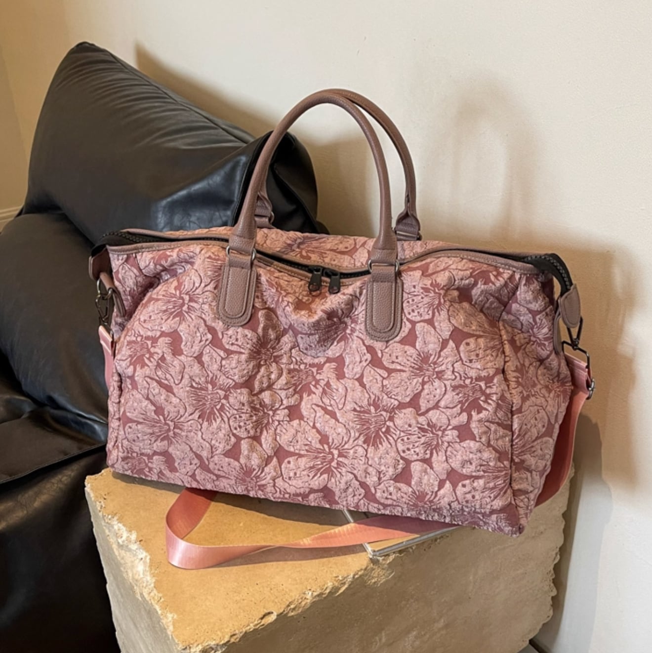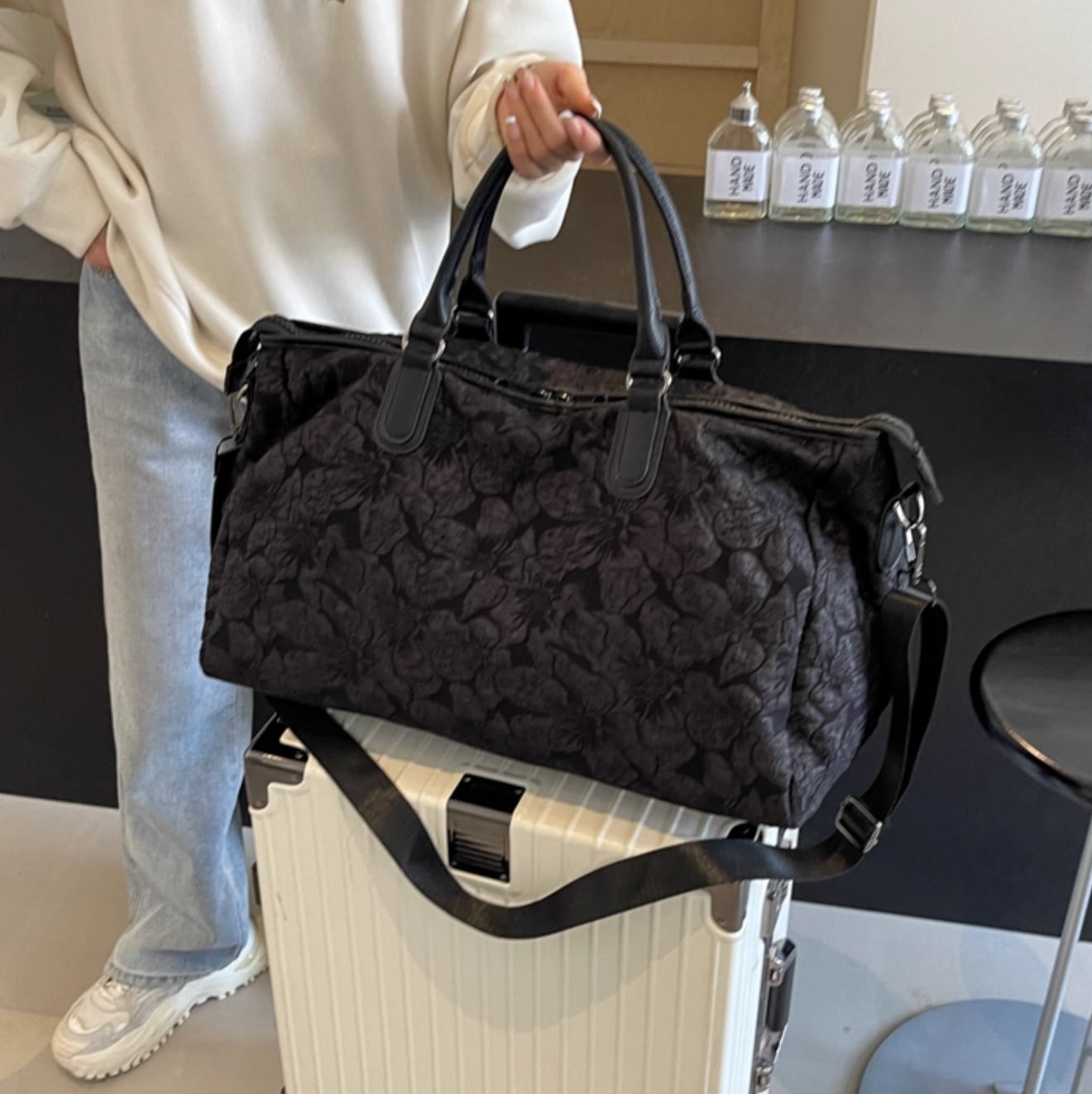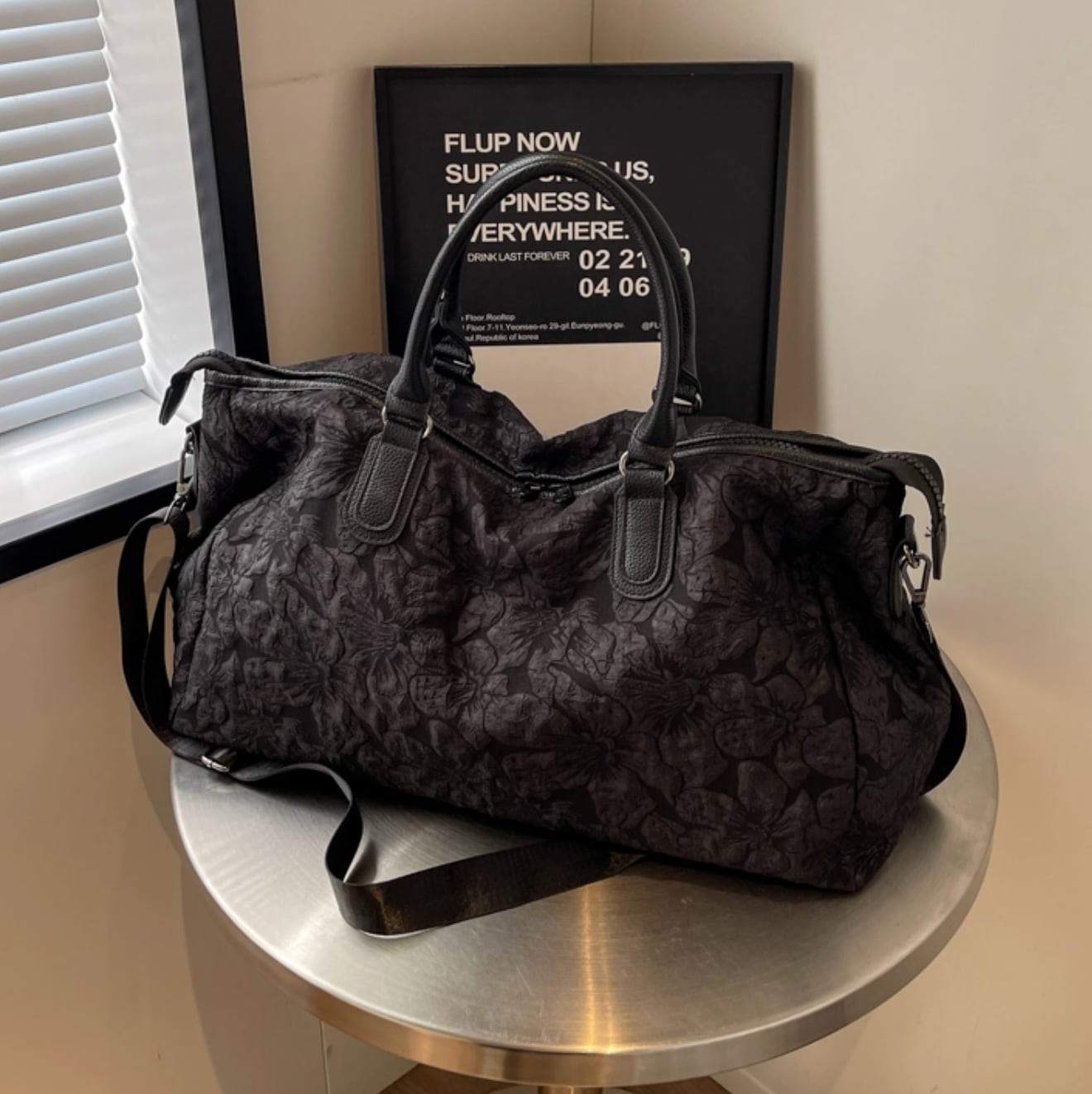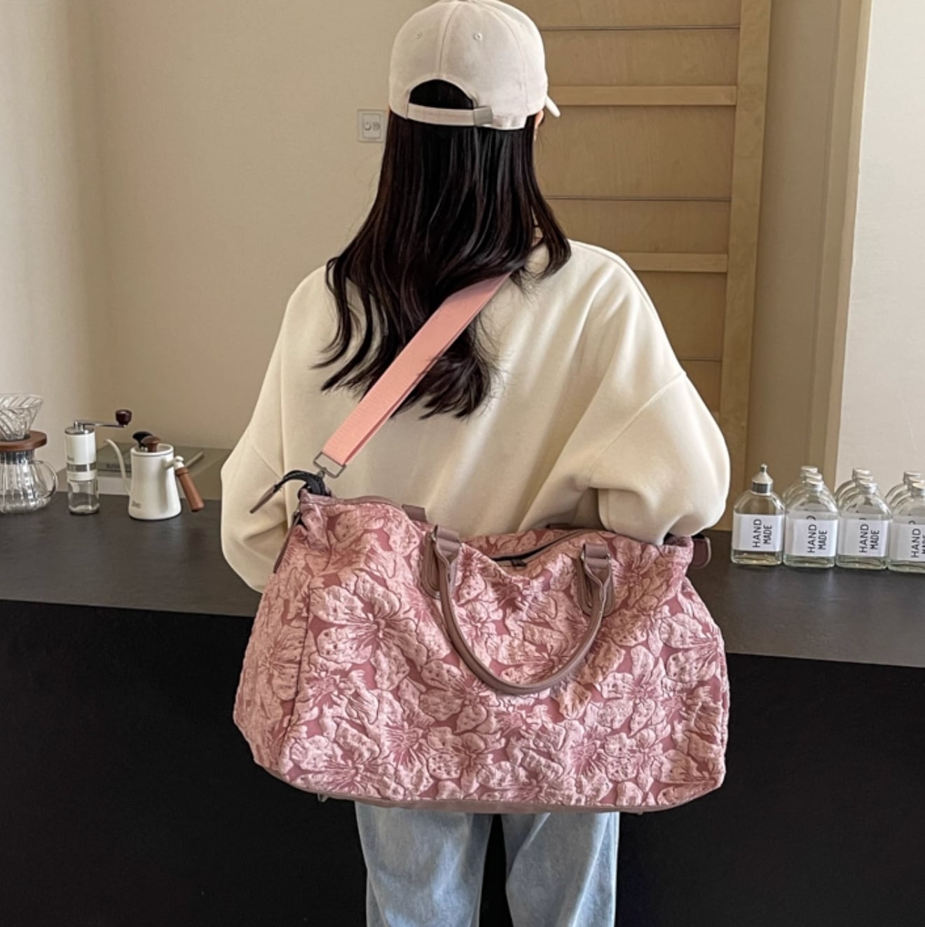 立体的なフラワーパターンが華やかに映える、大容量の2WAYバッグ。