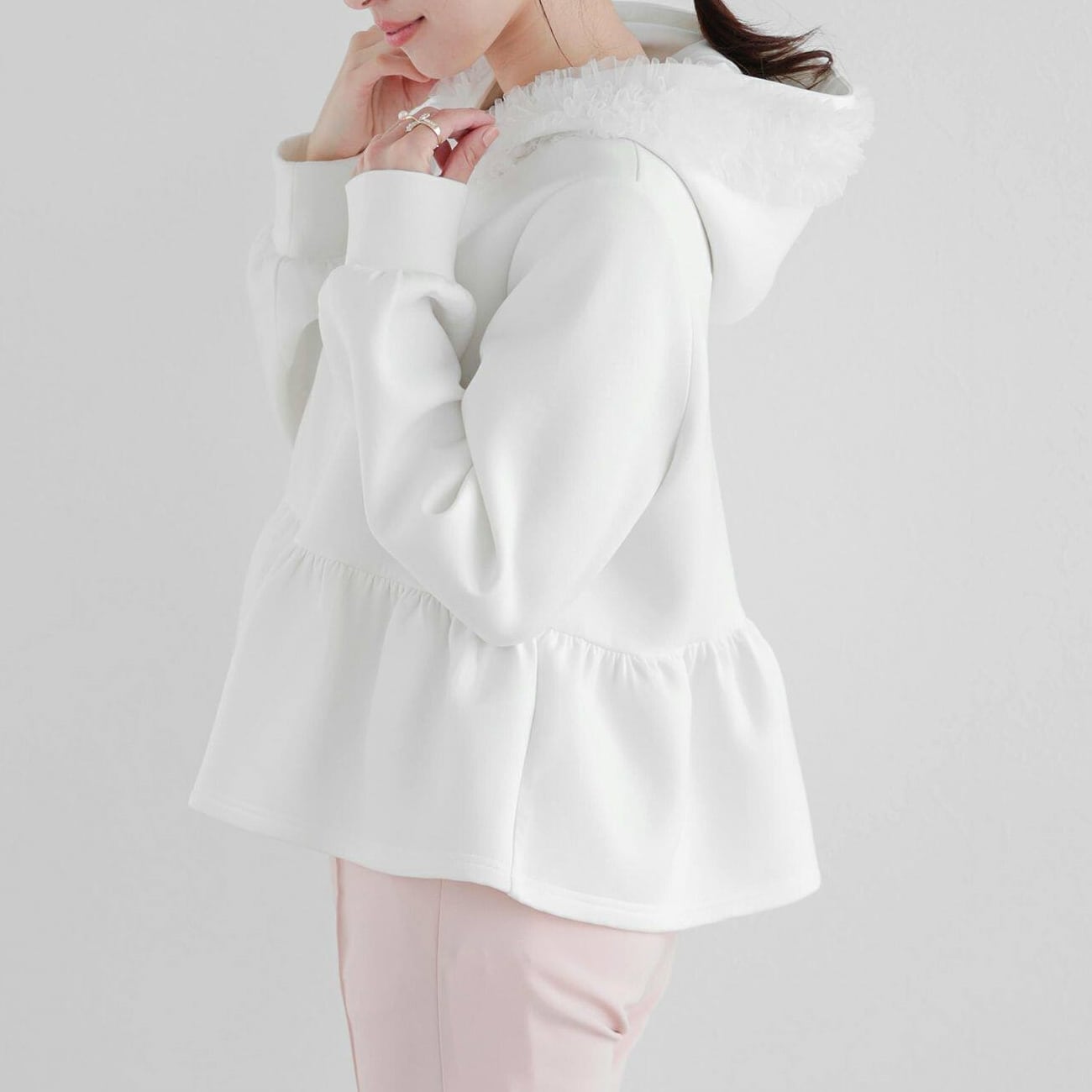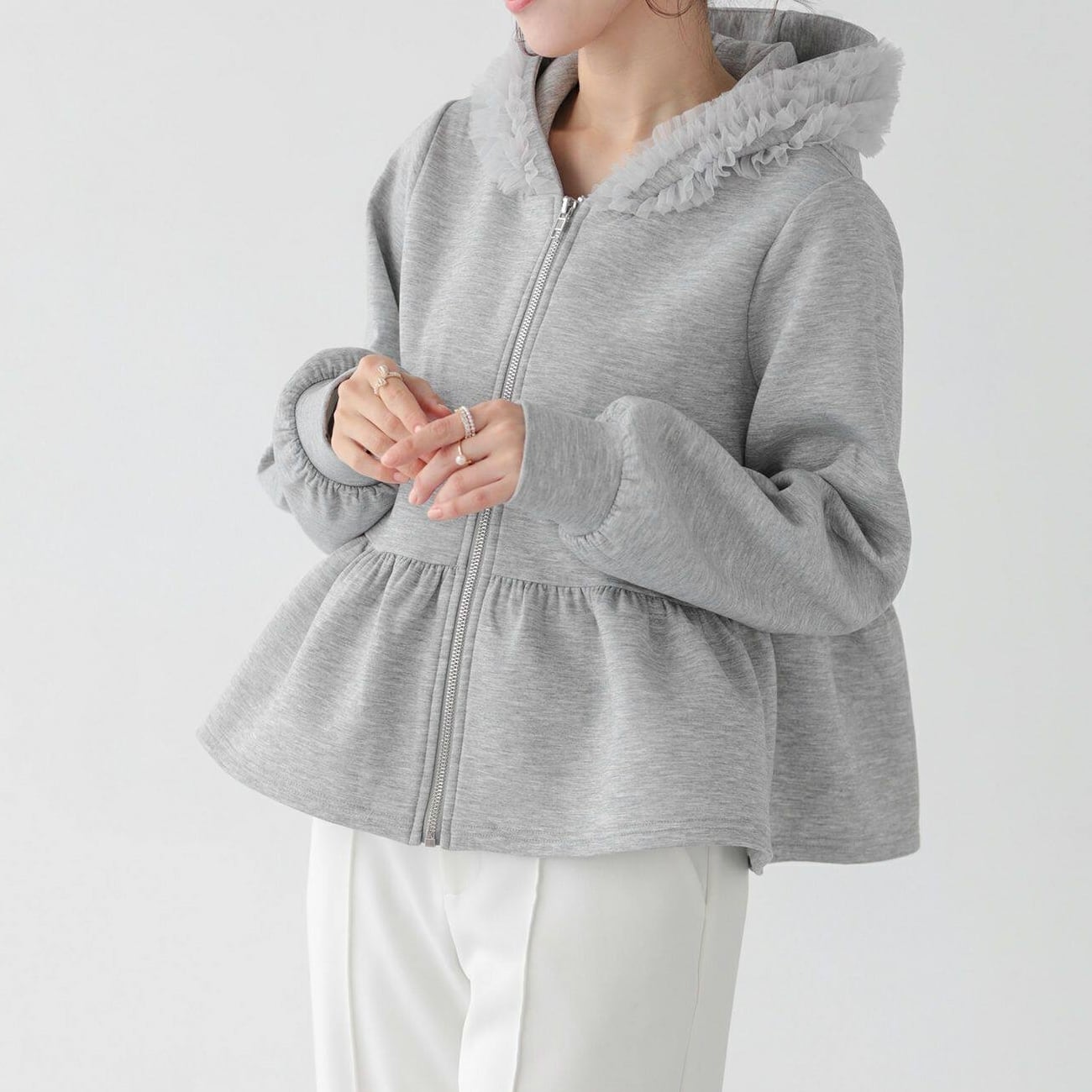フリルフードフレアパーカー H402