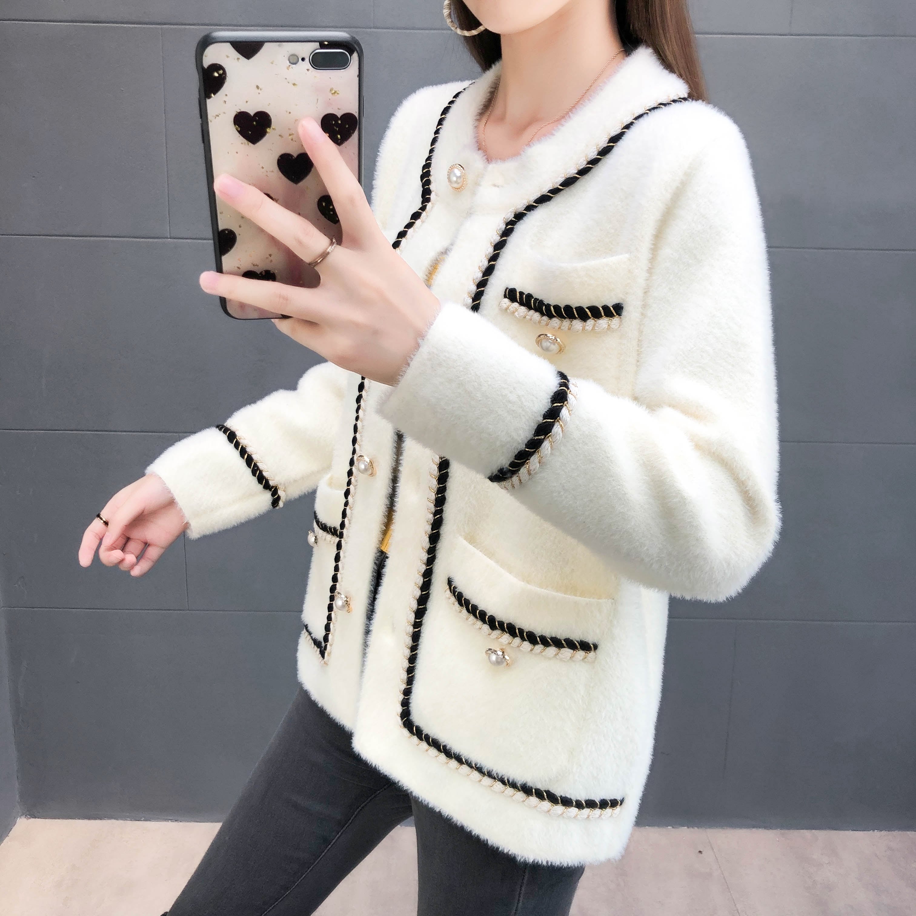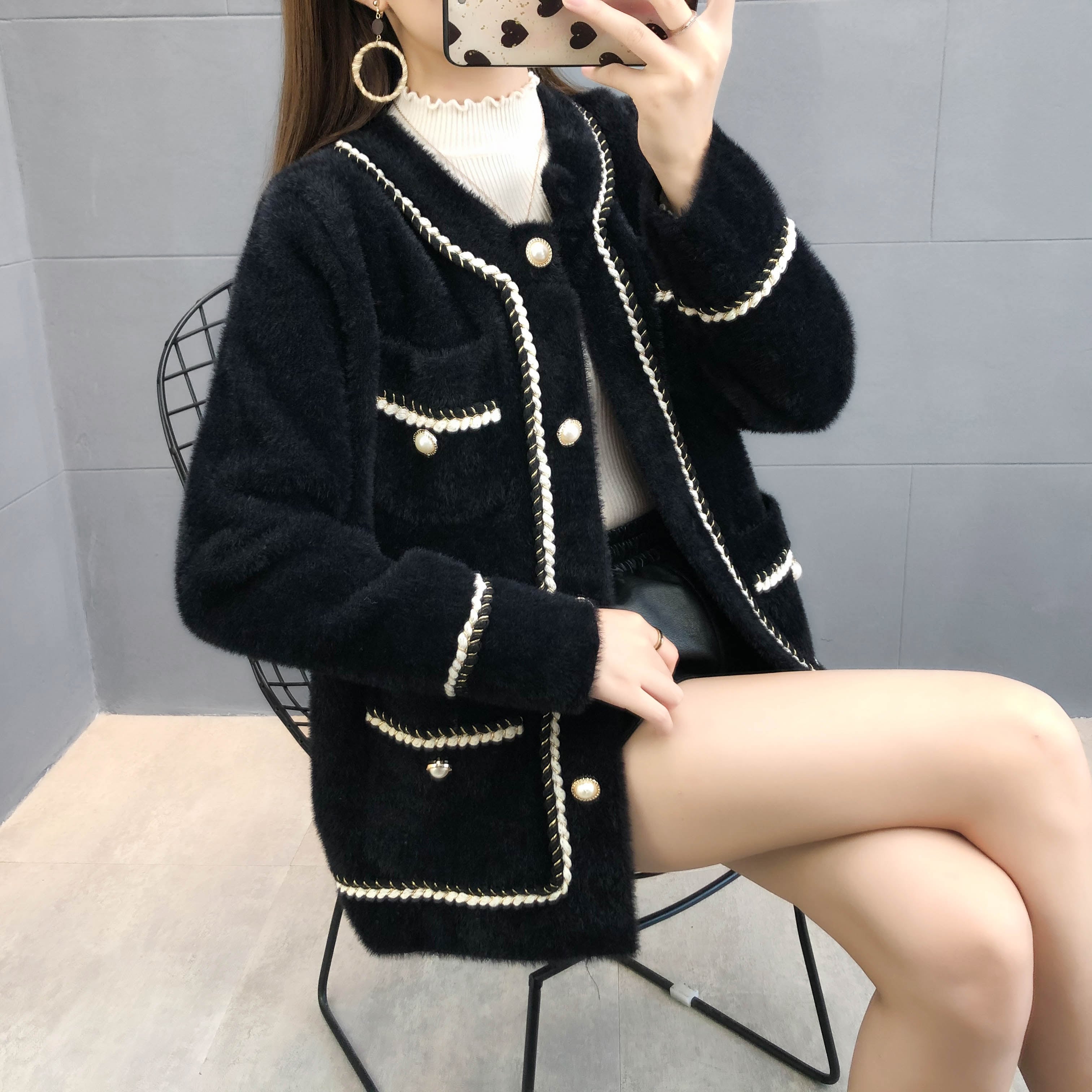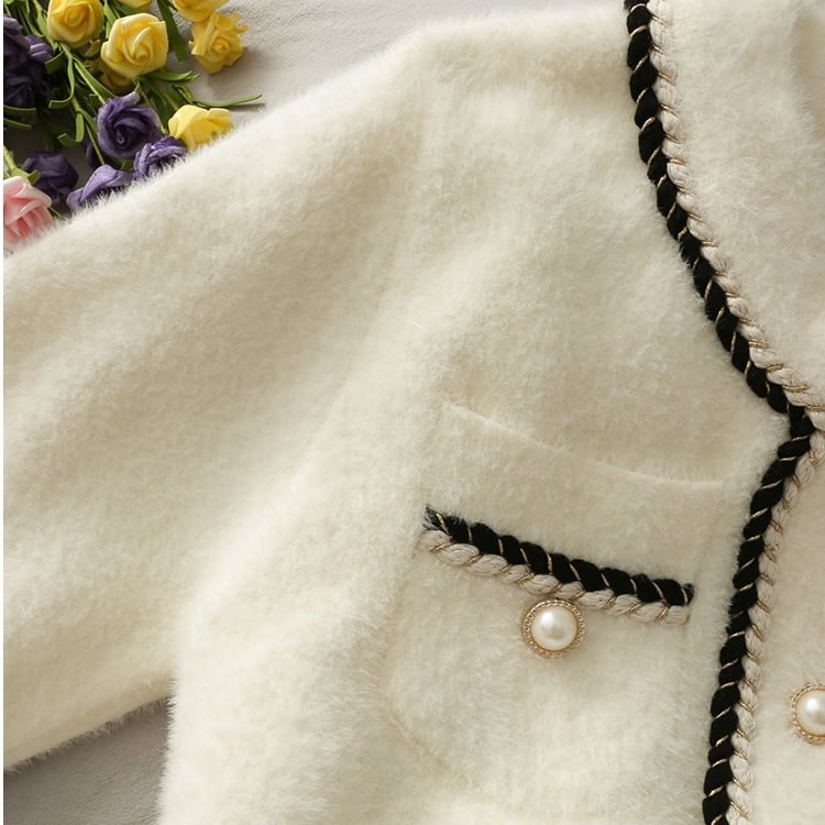 ミディアム丈のふわふわノーカラージャケット♡
