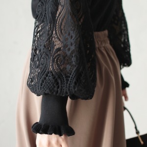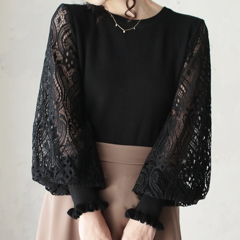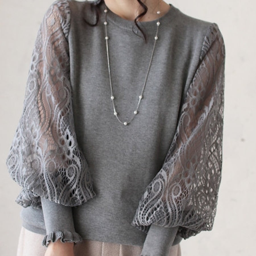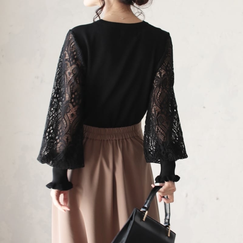 ぽわんとした袖にレースを施し、身頃をシンプルにすることで袖が映えるデザインのトップスになっています❢