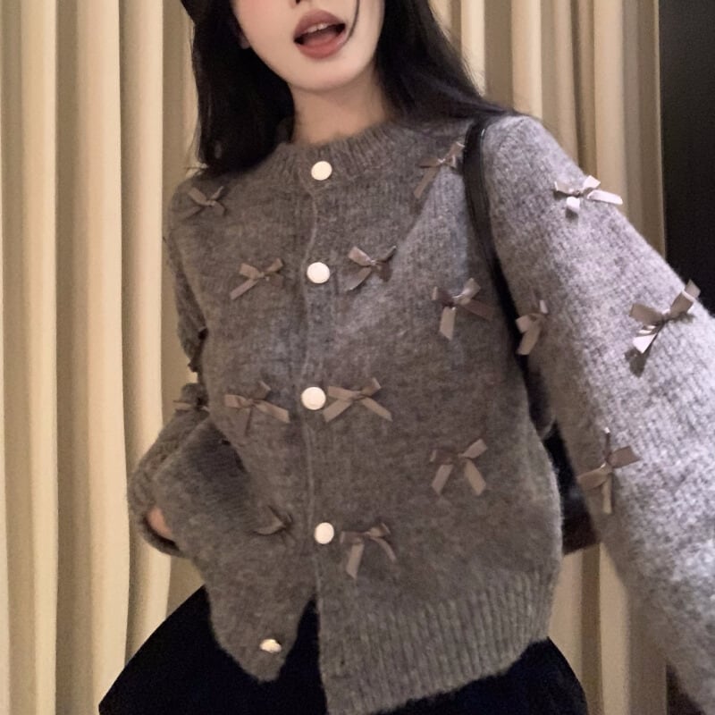 可愛らしい小さなリボンがたくさん散りばめられたカーディガン♡