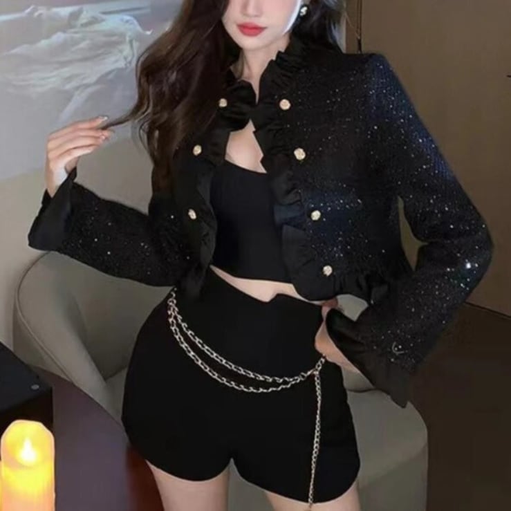 スパンコールが全体にあしらわれた華やかなデザインが特徴のジャケット✧˖°