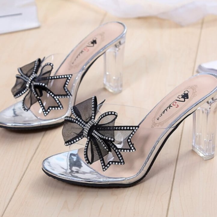 ラインストーンリボンクリアサンダル H516