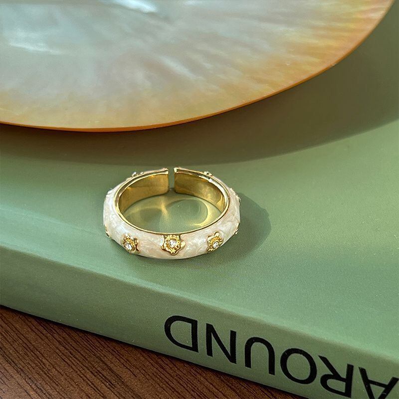 フラワーモチーフホワイトリング H563